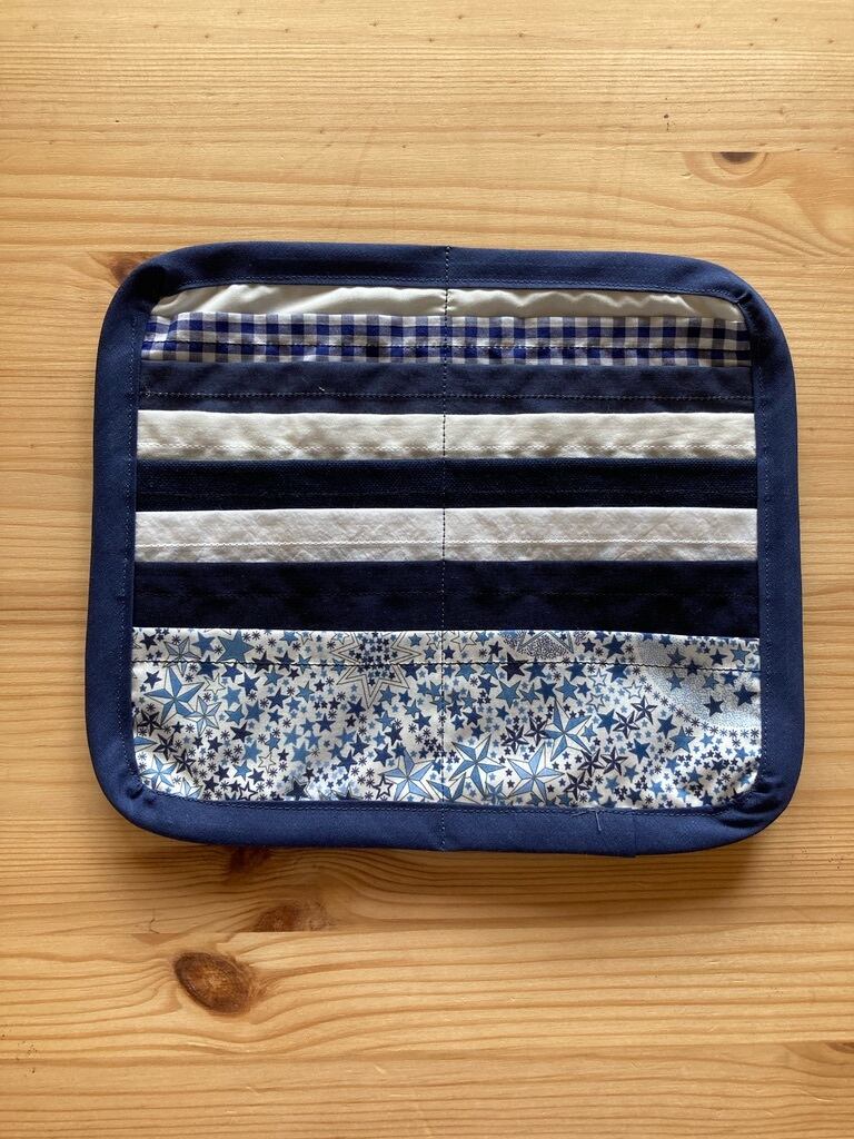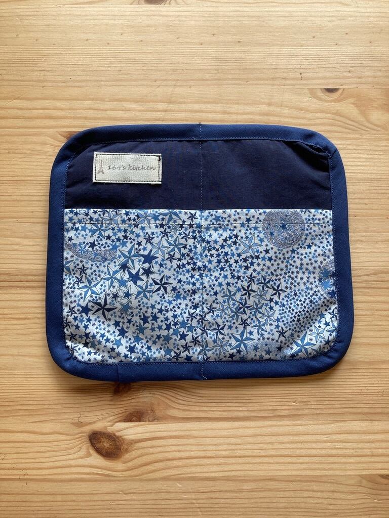 ポケット 白、ネイビー、チェック(白×ブルー)