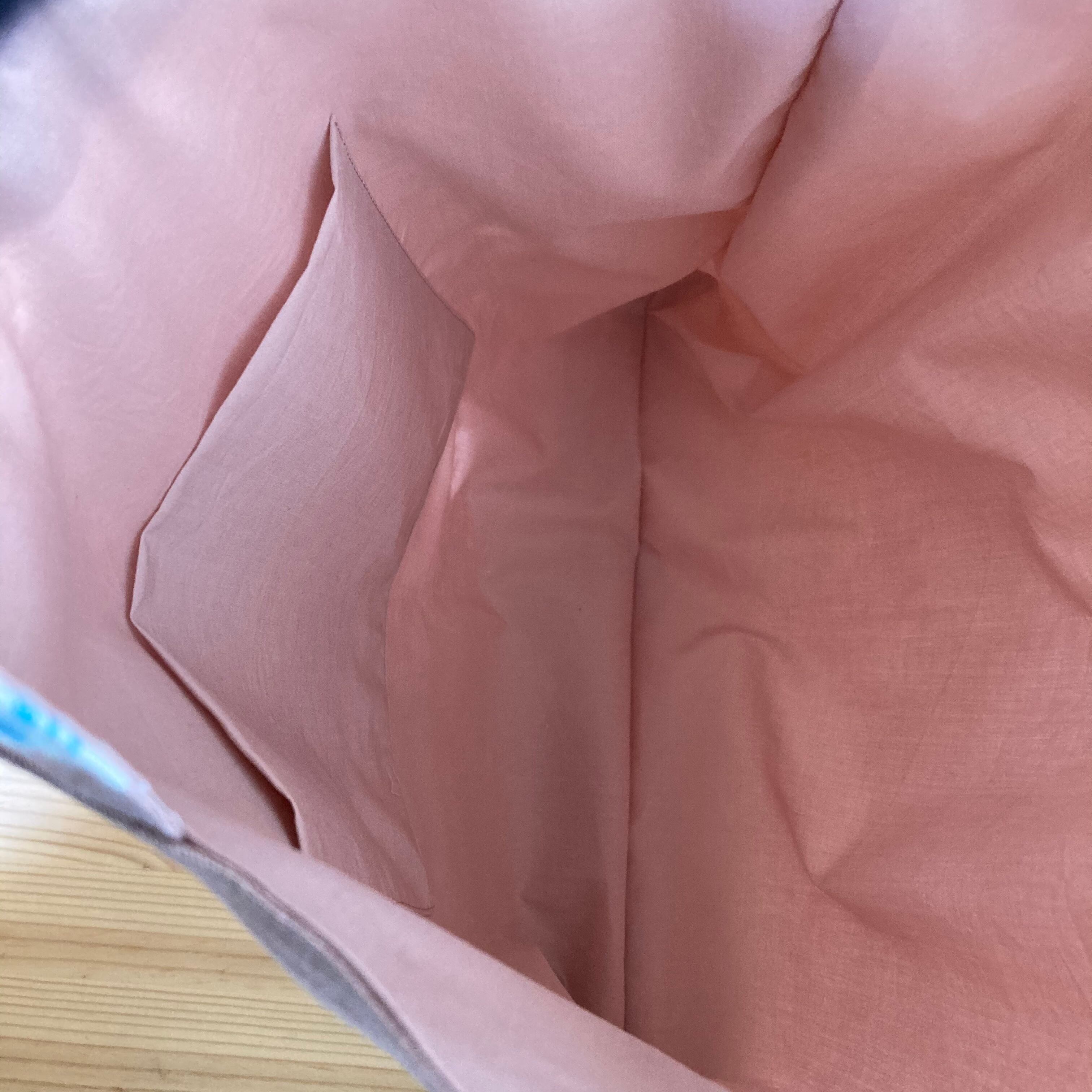 内側に少し大きめのポケットを1つ付けるだけにしてとてもシンプルな作りです⭐︎