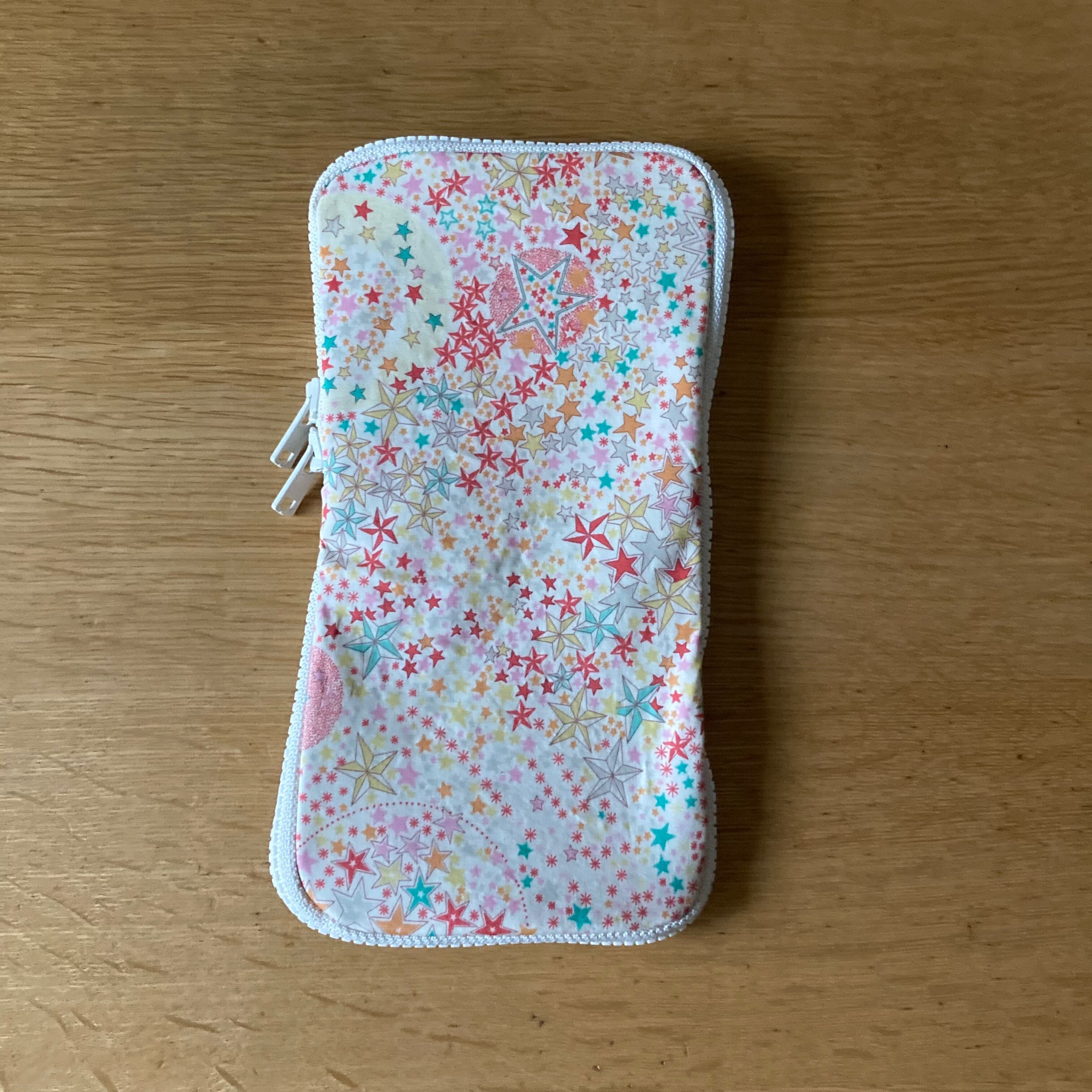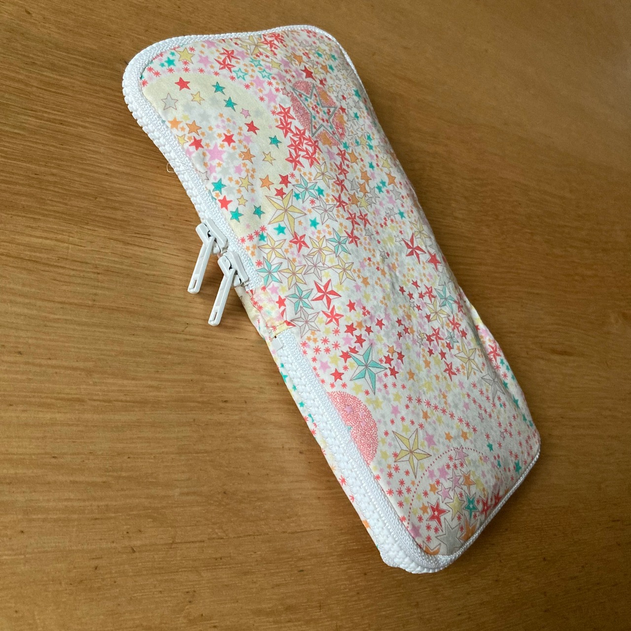 リバティ アデラジャ生地を使用して作った180°C開くペンケースです。