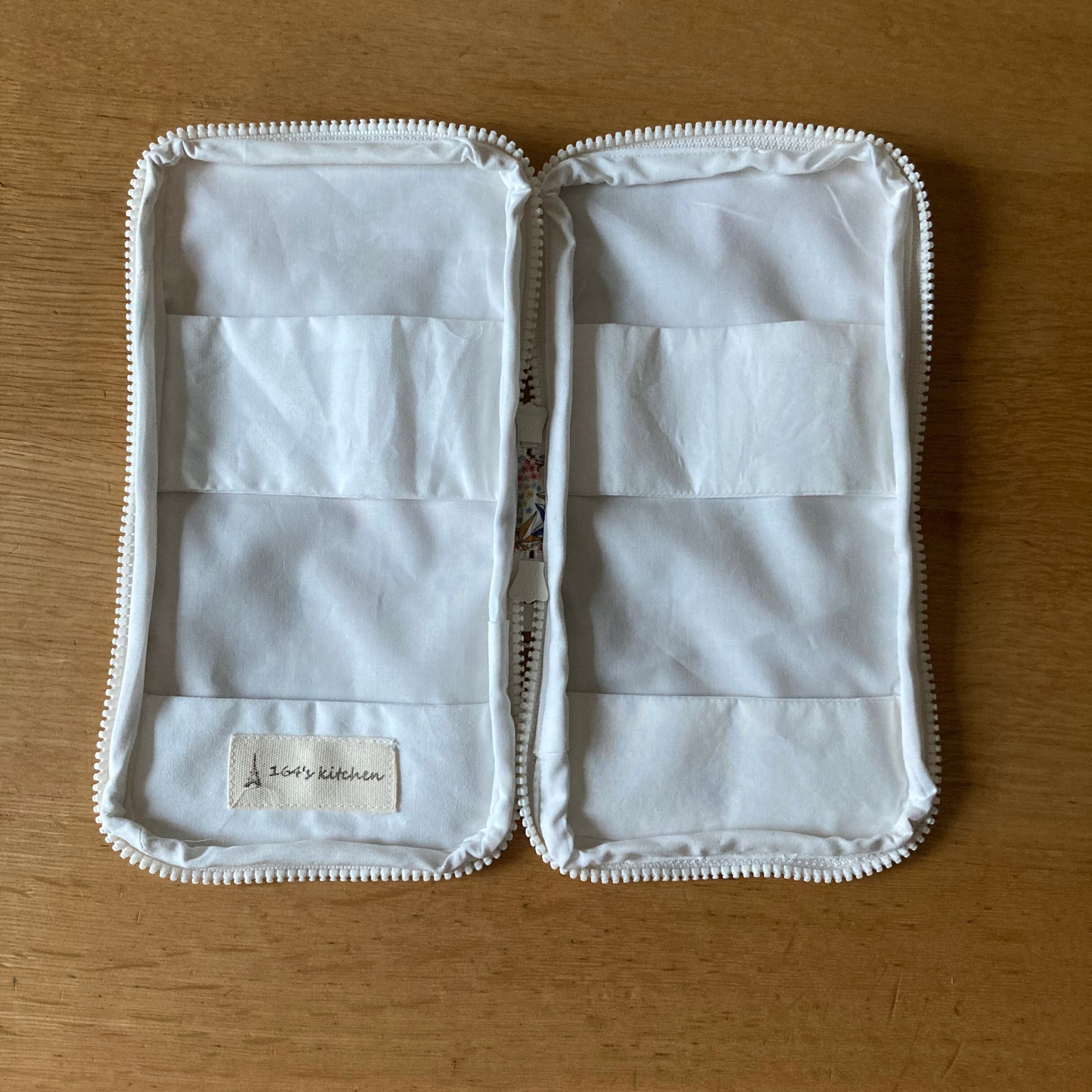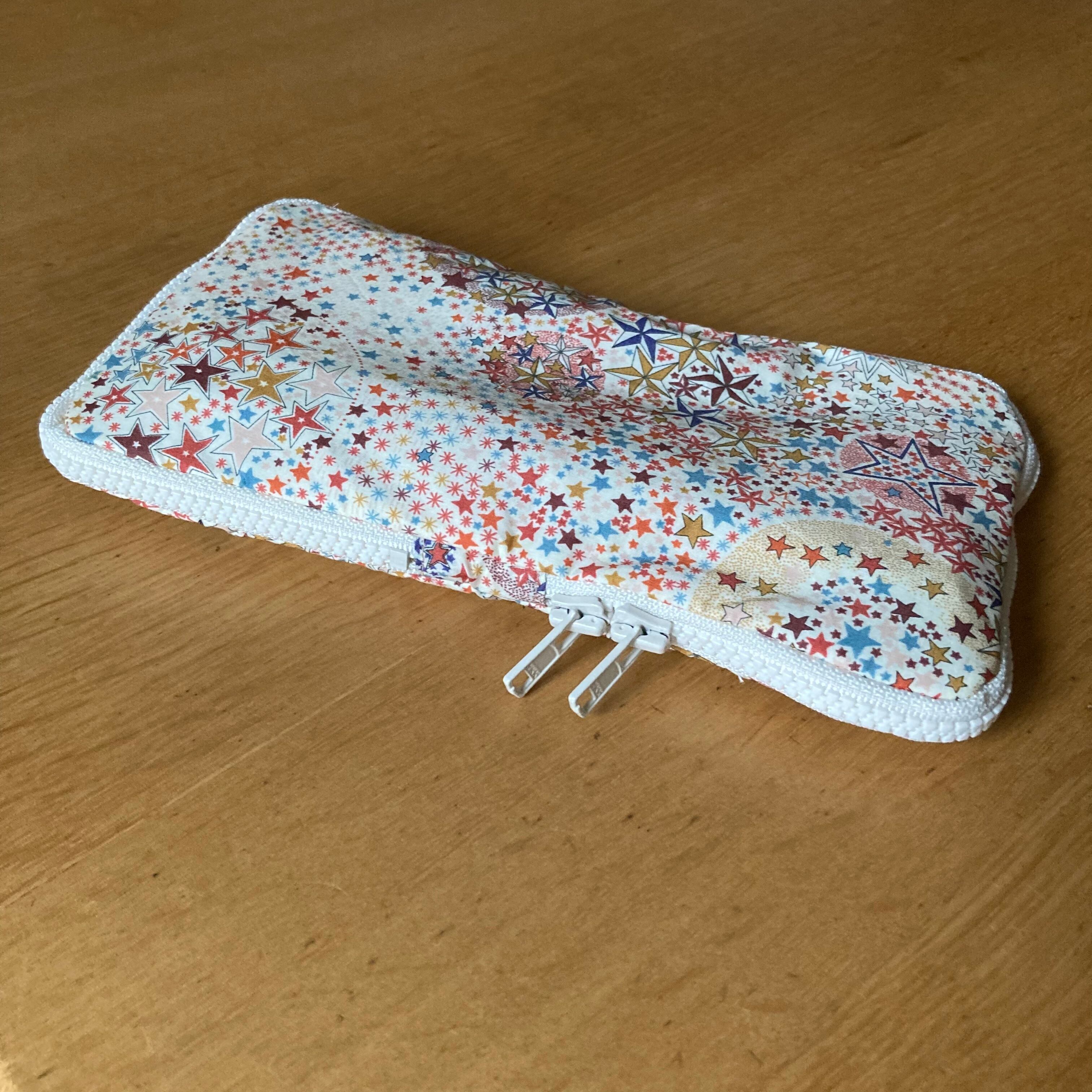 リバティ アデラジャ生地を使用して作った180°C開くペンケースです。