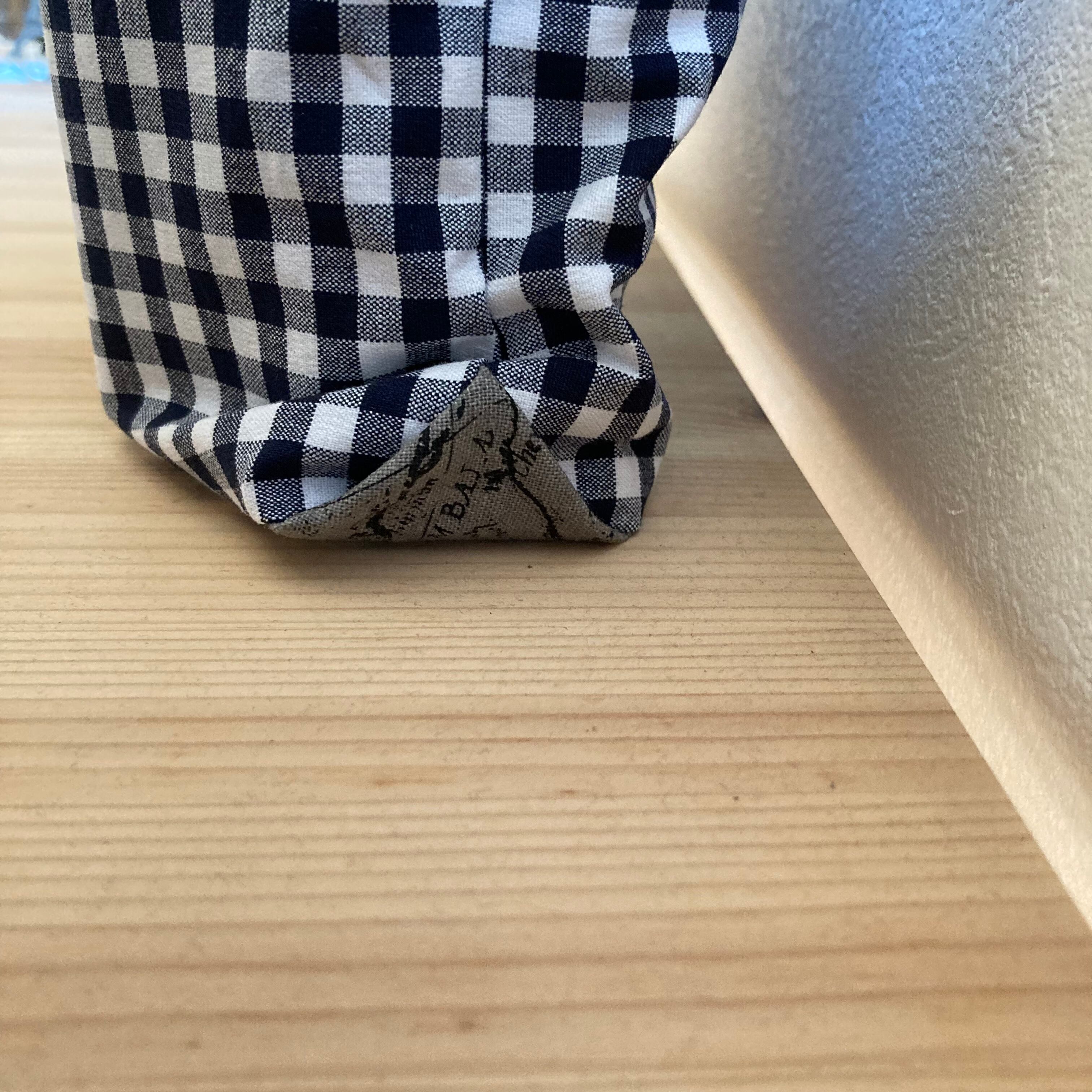 上部と底で生地を切り替えて、アクセントに☆