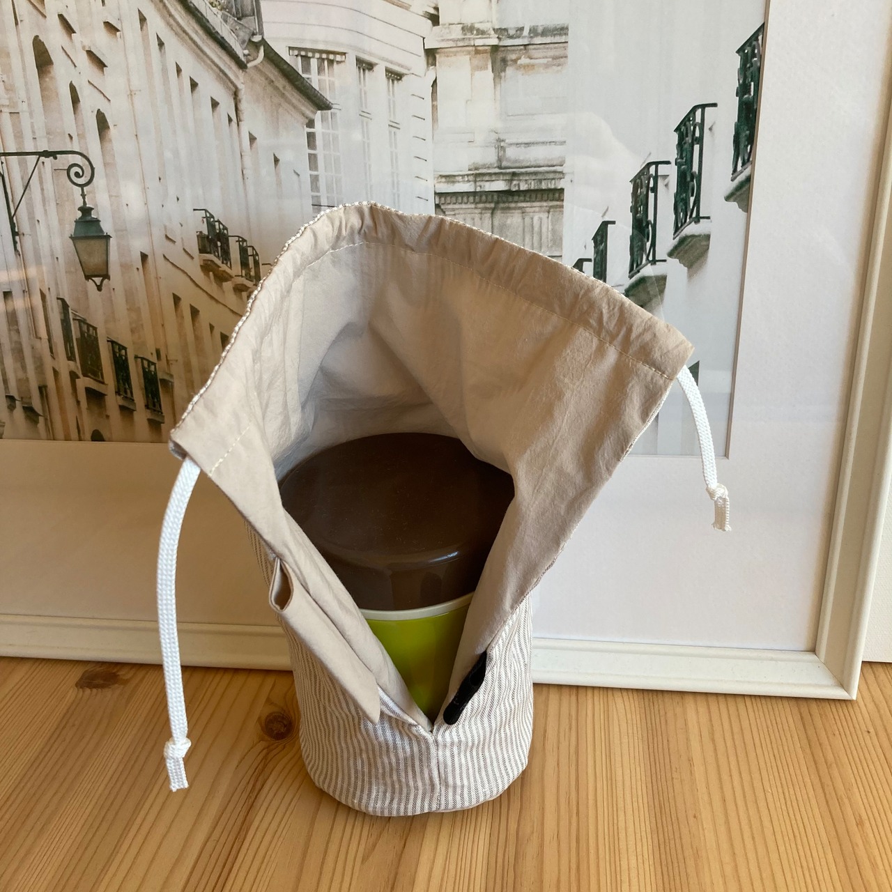お弁当に持っていくスープジャーを持ち運ぶのに便利な巾着タイプの入れ物を作ってみました☆