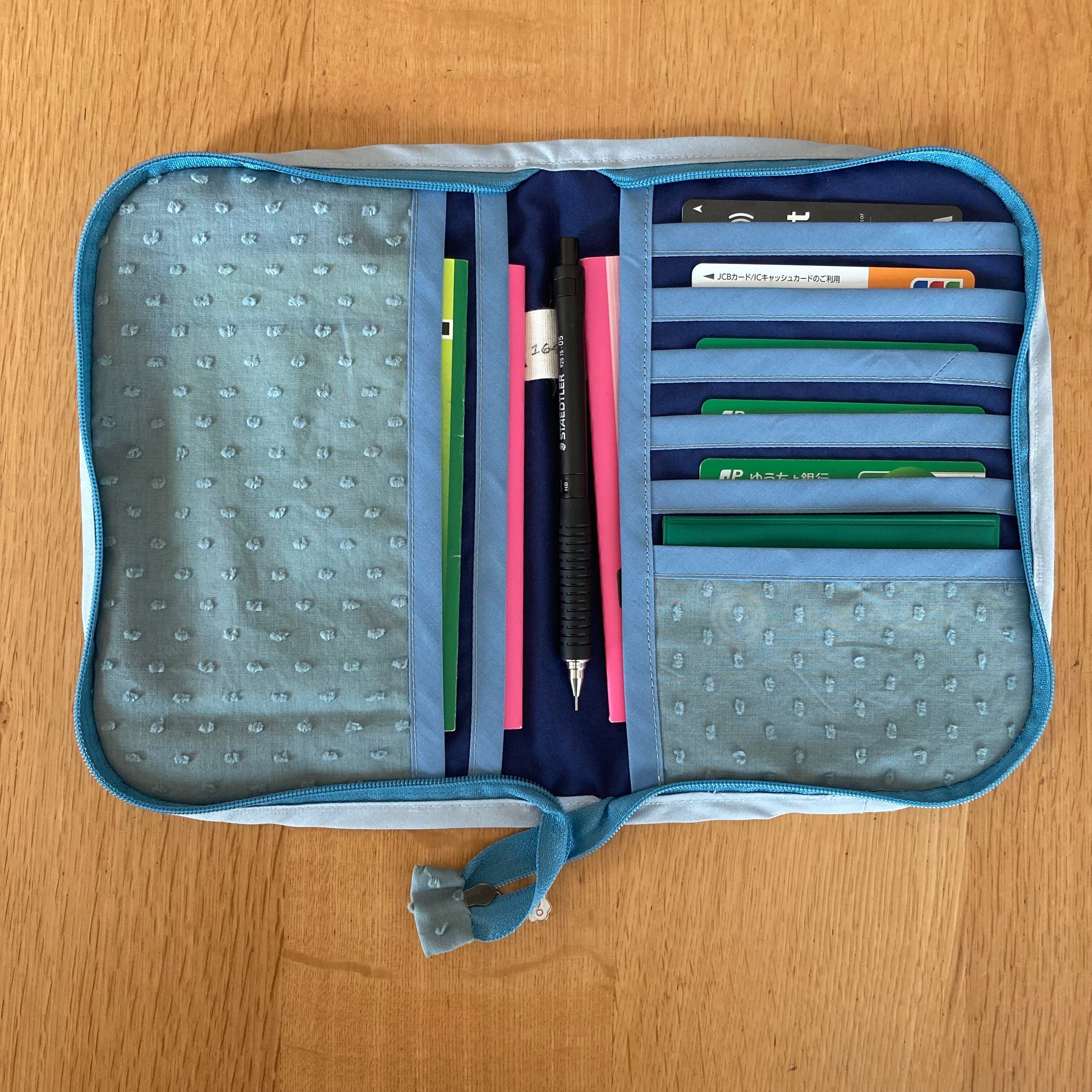 月一の銀行巡りに便利なキャッシュカードと通帳を同時に持ち運べるラウンドジッパー型通帳ケースです♪