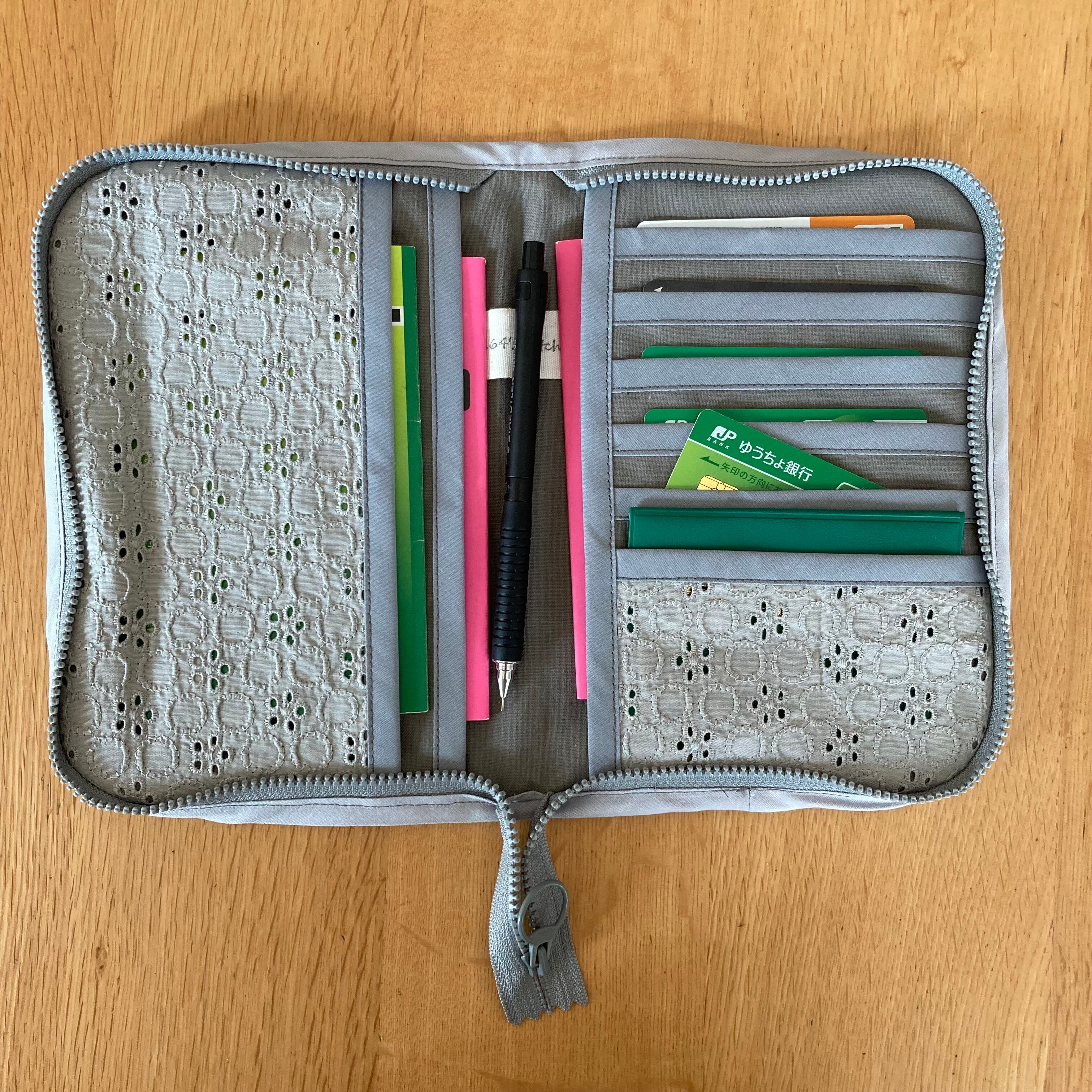 月一の銀行巡りに便利なキャッシュカードと通帳を同時に持ち運べるラウンドジッパー型通帳ケースです♪